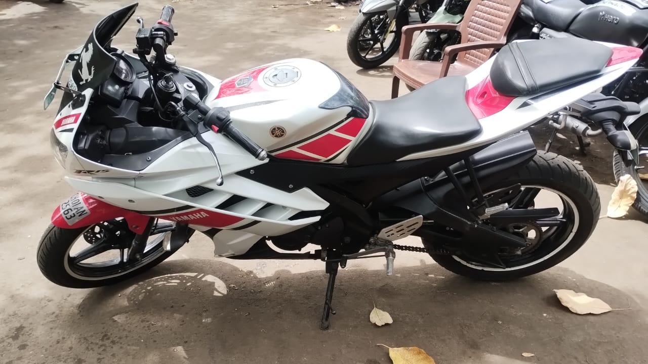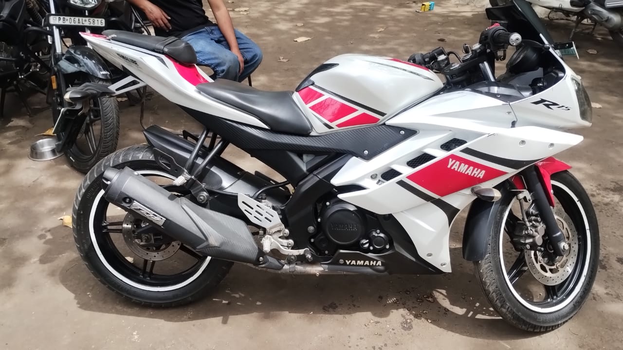2012 Yamaha Yamaha R15 for sale. Asking price: βΉ65,000. Total running: 30,000 km. Registered in Chandigarh. Powered by a 150cc engine. Transmission: Manual(gear). Fuel type: Petrol. Finished in White colour.