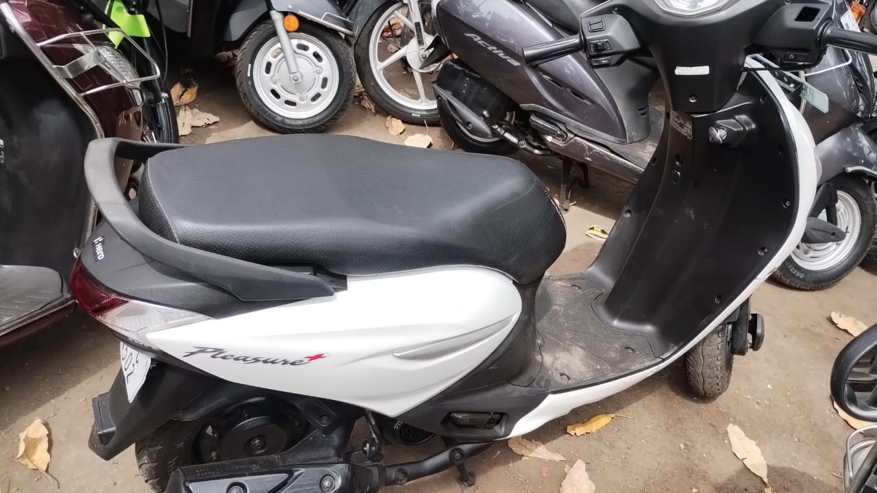 2022 Hero pleasure for sale. Asking price: βΉ55,000. Delivers around 60 kmpl in real-world riding. Total running: 9,586 km. Registered in Punjab. Powered by a 110cc engine. Transmission: Manual(automatic). Fuel type: Petrol. Finished in White colour. Accident history: Never.